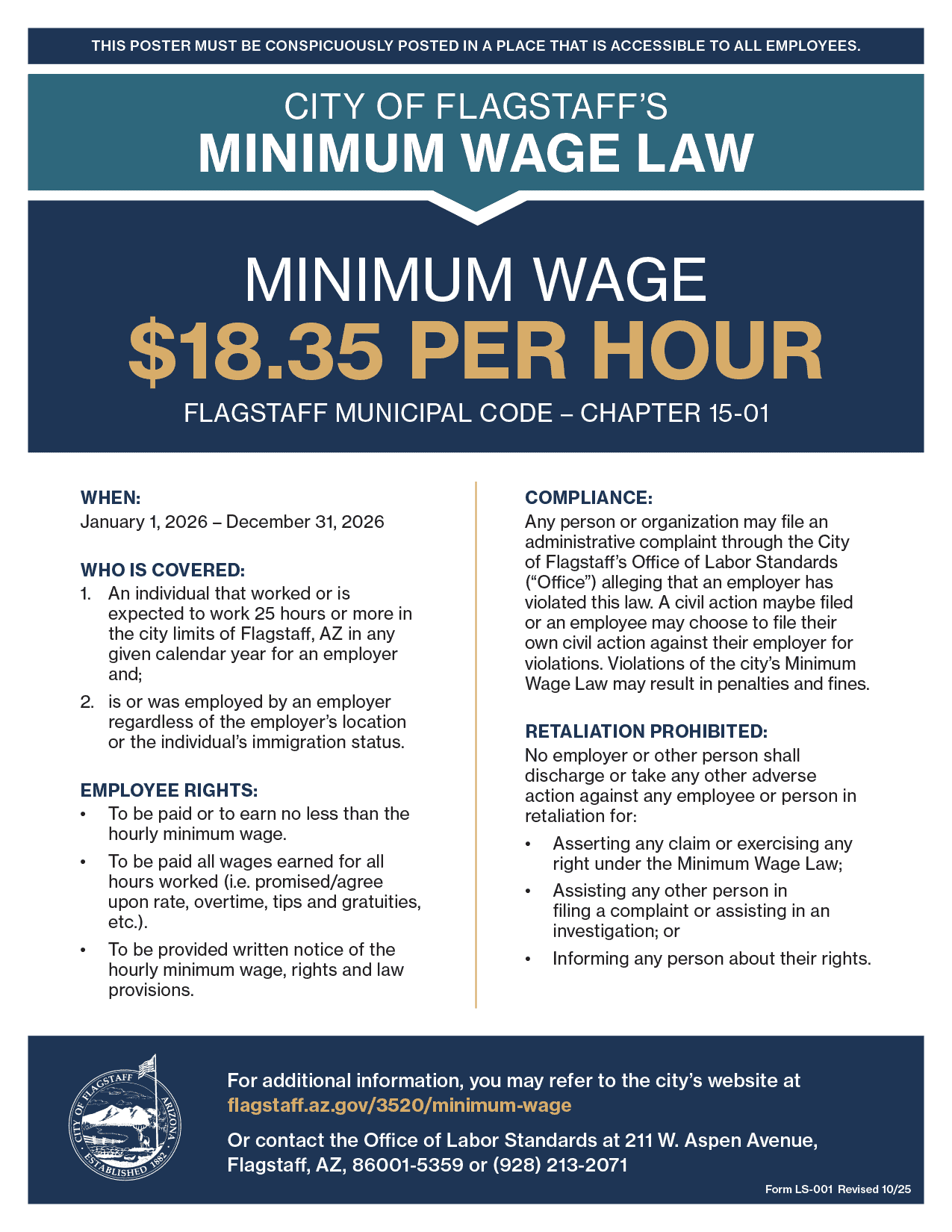 Arizona Flagstaff Minimum Wage Poster