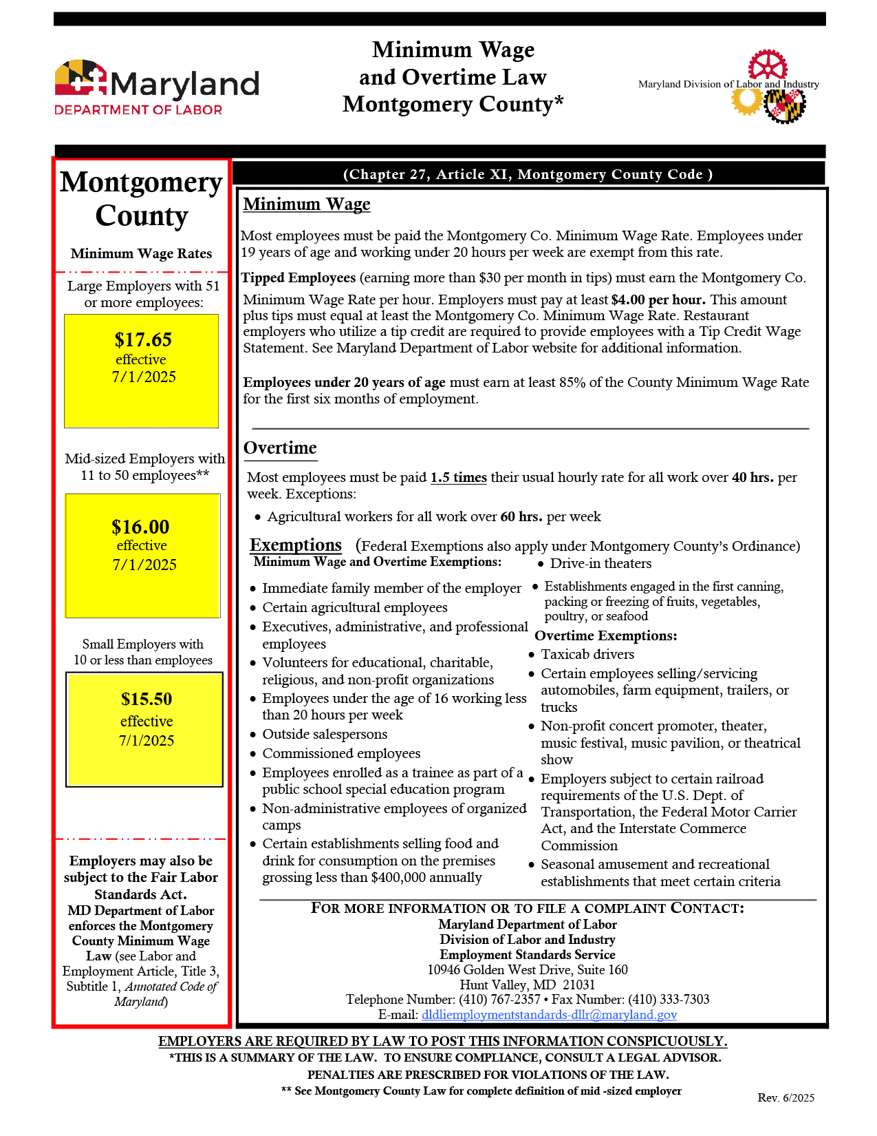 Maryland Montgomery County Minimum Wage Poster