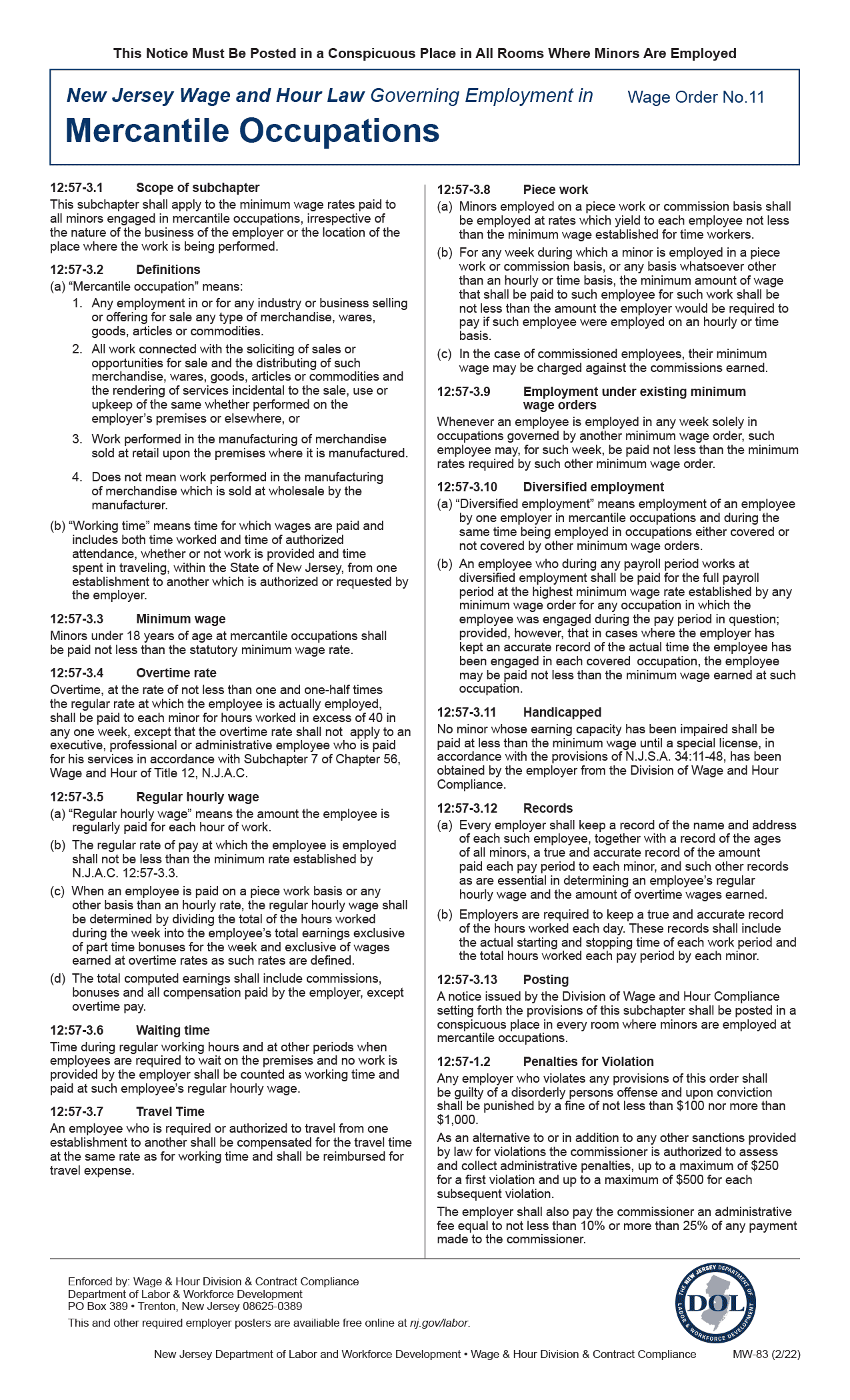 New Jersey Mercantile Occupations Wage Order no11