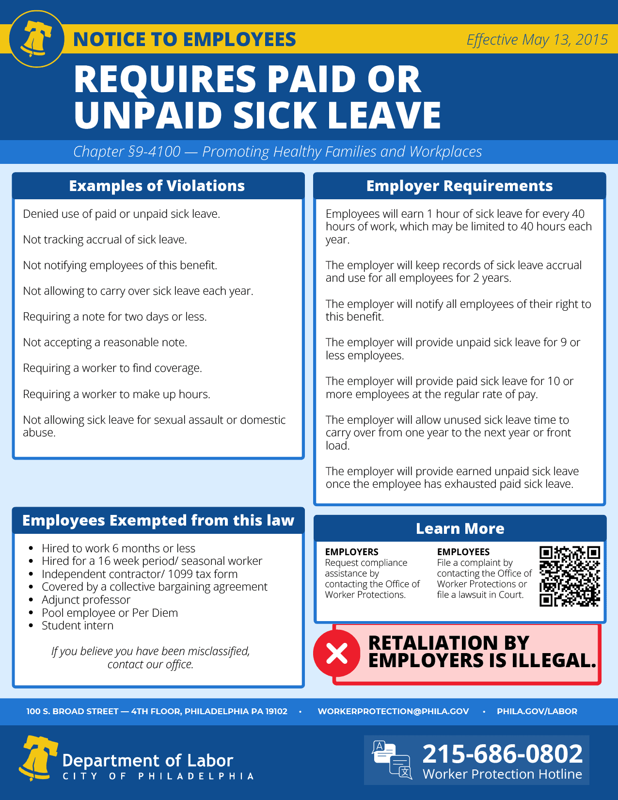 Pennsylvania Philadelphia Sick Leave Posters (english only)