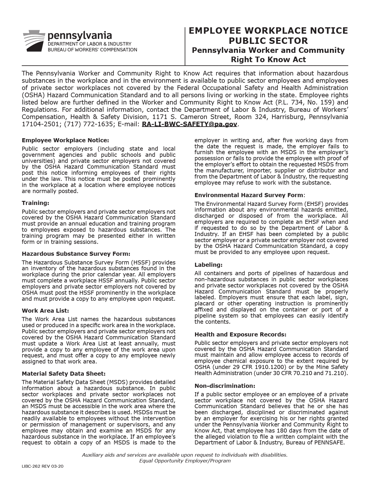 Pennsylvania Right to Know Act Poster